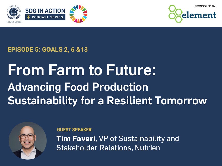 The SDG in Action podcast series brings together industry leaders to explore how Canadian businesses can align with the Sustainable Development Goals (SDGs) and drive meaningful change. Featuring experts such as Brooke Tucker-Reid, Global Head of Sustainability Strategy and Reporting, Manulife; Michelle Joy Rafat, Head of Diversity, Equity, and Inclusion, Manulife Canada; Tim Faveri, VP of Sustainability and Stakeholder Relations, Nutrien., Dr. Michael Wrinch, Founder and President, Hedgehog Technologies; and Shawna Ketter, Senior Director of ESG and Culture, Jamieson Wellness, this series offers valuable insights into turning sustainability commitments into action.